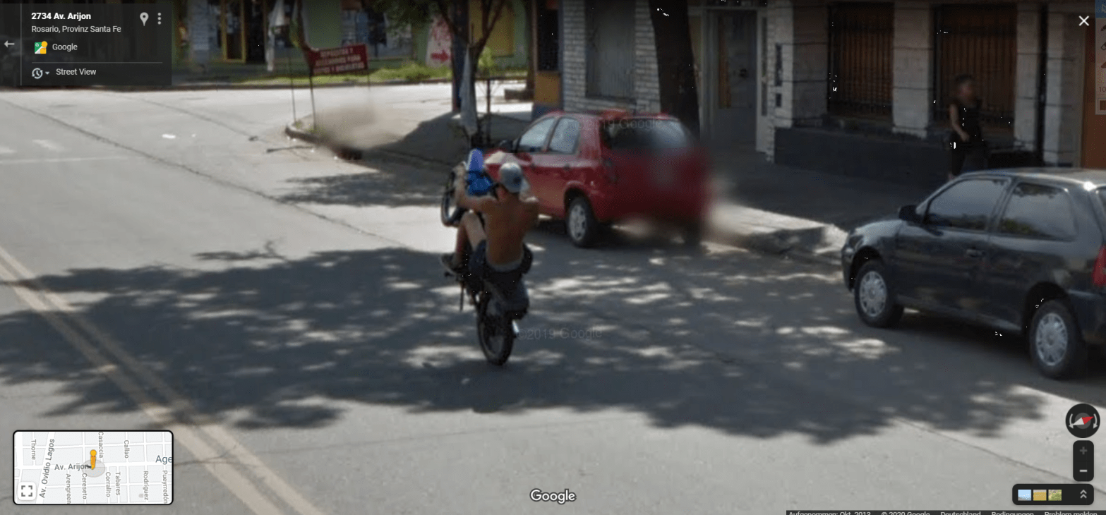 Crazy wheelie found in Argentina Google Maps Link: https://www.google.com/maps/@-33.0038074,-60.6733088,3a,15y,291.17h,82.58t/data=!3m6!1e1!3m4!1sS6jAphnPCo3X3nd–xYKDg!2e0!7i13312!8i6656