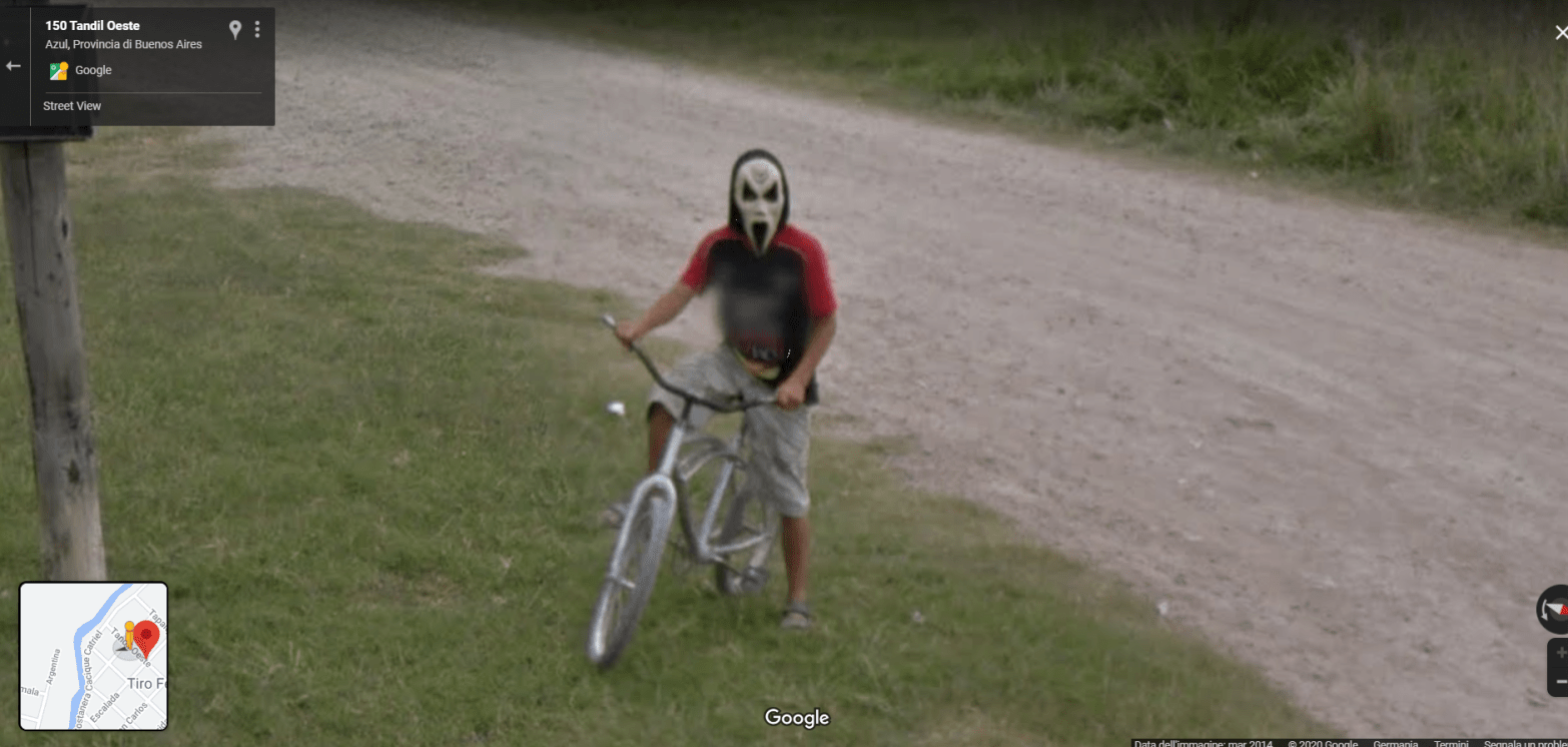 Scary bicyclist https://www.google.it/maps/@-36.762192,-59.8625761,3a,15y,250.69h,77.49t/data=!3m6!1e1!3m4!1syADkd2rcQ1UUNH4yeKDCvQ!2e0!7i13312!8i6656?hl=it
