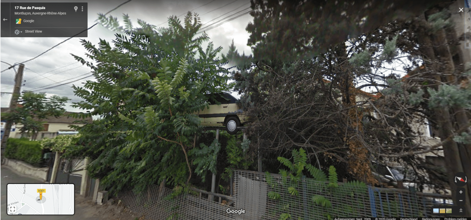 Tree parking https://www.google.com/maps/@46.3585795,2.5916695,3a,78.1y,241.31h,97.66t/data=!3m6!1e1!3m4!1sG8b9JeNchKv3Oam3S6aUGA!2e0!7i13312!8i6656