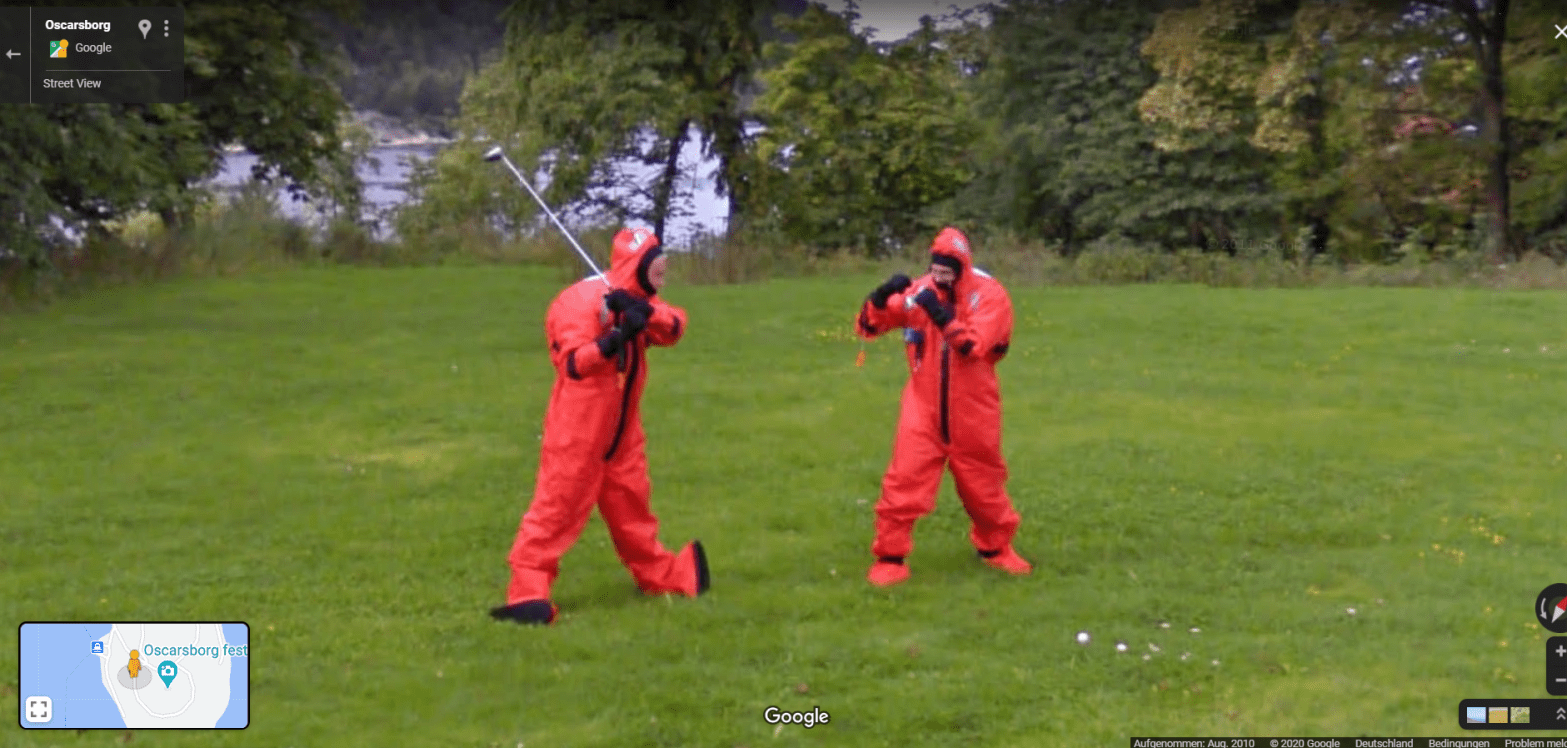 Weird game https://www.google.com/maps/@59.6738319,10.6057555,3a,19.8y,328.88h,82.41t/data=!3m6!1e1!3m4!1smBMIcCpLTwsuOz1AyhD_ew!2e0!7i13312!8i6656