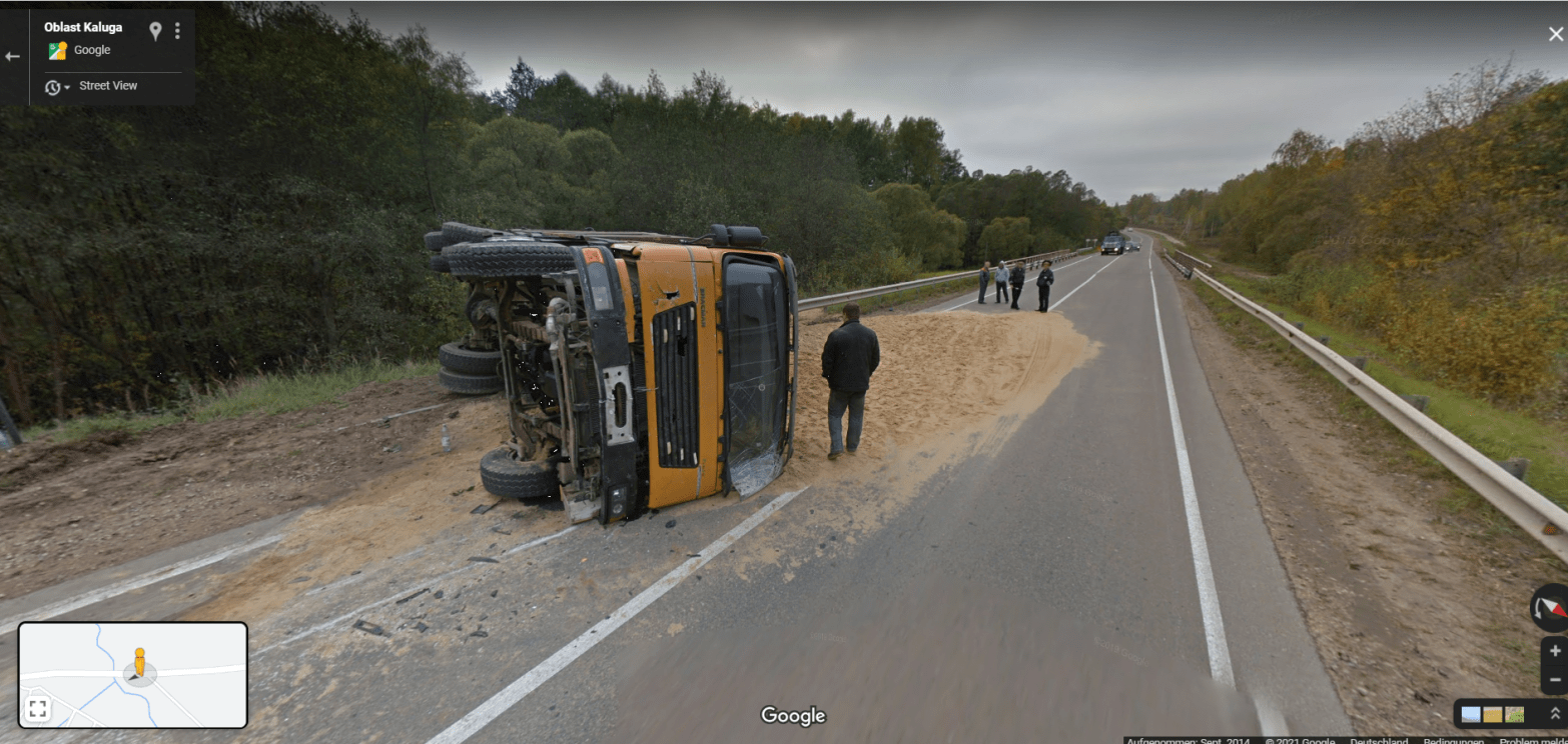 Tipped over truck Posted byM und M TV3. January 2021Posted inRussia https://www.google.com/maps/@54.515794,36.4580986,3a,75y,139.26h,73.85t/data=!3m6!1e1!3m4!1sJWK_iDsdRQmJLs83ATFLFQ!2e0!7i13312!8i6656 Share this:Tweet Click to print (Opens in new window) Print Click to share on WhatsApp (Opens in new window) WhatsApp Click to email a link to a friend (Opens in new window) Email Like Loading...