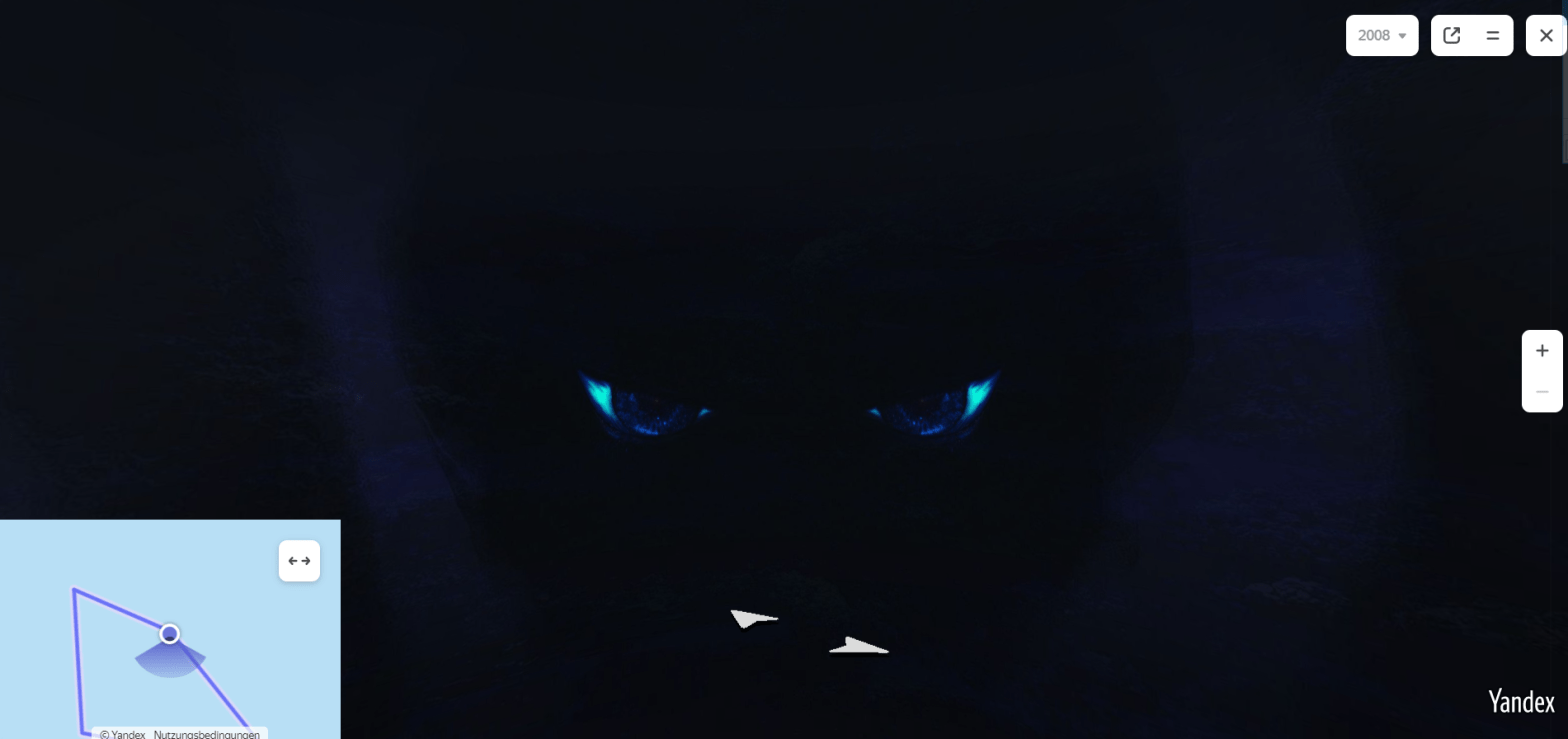 Easter eggs on yandex maps #1 Posted byM und M TV11. January 202111. January 2021Posted inyandex maps https://yandex.com/maps/?l=stv%2Csta&ll=141.476131%2C11.582107&panorama%5Bdirection%5D=179.281963%2C2.814654&panorama%5Bfull%5D=true&panorama%5Bpoint%5D=141.476317%2C11.582710&panorama%5Bspan%5D=120.000000%2C78.301798&z=18 Yandex.MapsYandex.Maps: search for places, addresses, and public transporthttps://yandex.com/map-widget/v1/-/CCUIBHULlC Share this:Tweet Click to print (Opens in new window) Print Click to share on WhatsApp (Opens in new window) WhatsApp Click to email a link to a friend (Opens in new window) Email Like Loading...