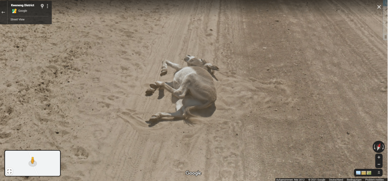 Nothing bad happened, here is what google wrote about it: https://maps.googleblog.com/2013/01/never-ass-ume.html Here is the Google Maps link:https://www.google.com/maps/@-23.5278273,24.7226155,3a,41.9y,336.77h,66.17t/data=!3m6!1e1!3m4!1s3L-F887yPcBnejtJvT6DoA!2e0!7i13312!8i6656