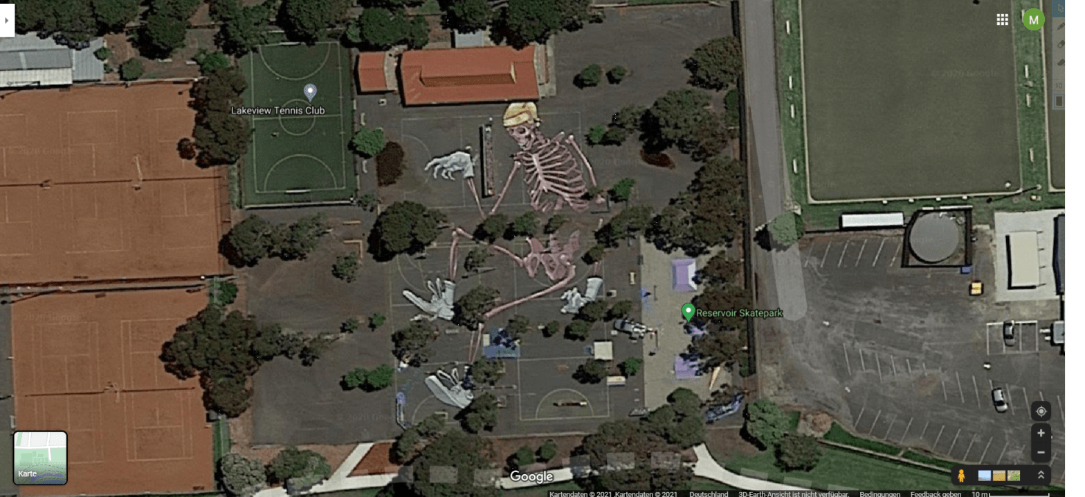 Posing for the camera https://www.google.com/maps/@-37.8689922,145.2387698,3a,21.9y,184.56h,76.06t/data=!3m6!1e1!3m4!1sKMCAeOsMYjff53gNnhJu8g!2e0!7i16384!8i8192