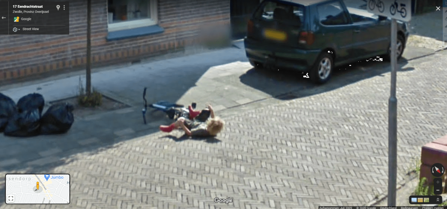 Falling off the Google bicycle https://www.google.com/maps/@25.2433163,121.6102464,3a,48.3y,304.76h,69.67t/data=!3m6!1e1!3m4!1sWD1FZ2FQSZyYihnk6bJrnA!2e0!7i13312!8i6656