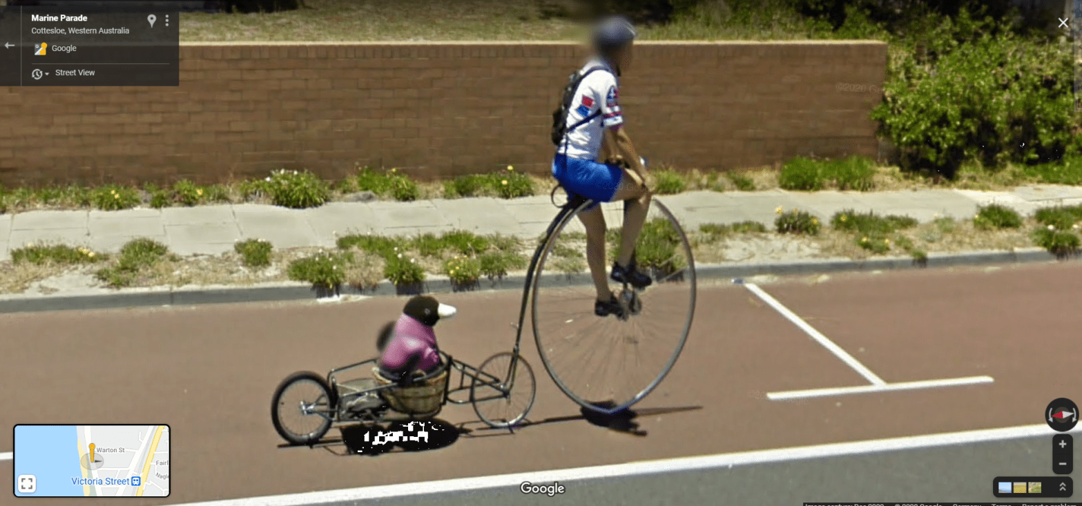Funny Bike Google Maps Link: https://www.google.com.au/maps/@-32.0106271,115.7522975,3a,24.2y,98.47h,76.13t/data=!3m6!1e1!3m4!1sEgQG9n-JKdPXrM5bFUl6ow!2e0!7i13312!8i6656?hl=en