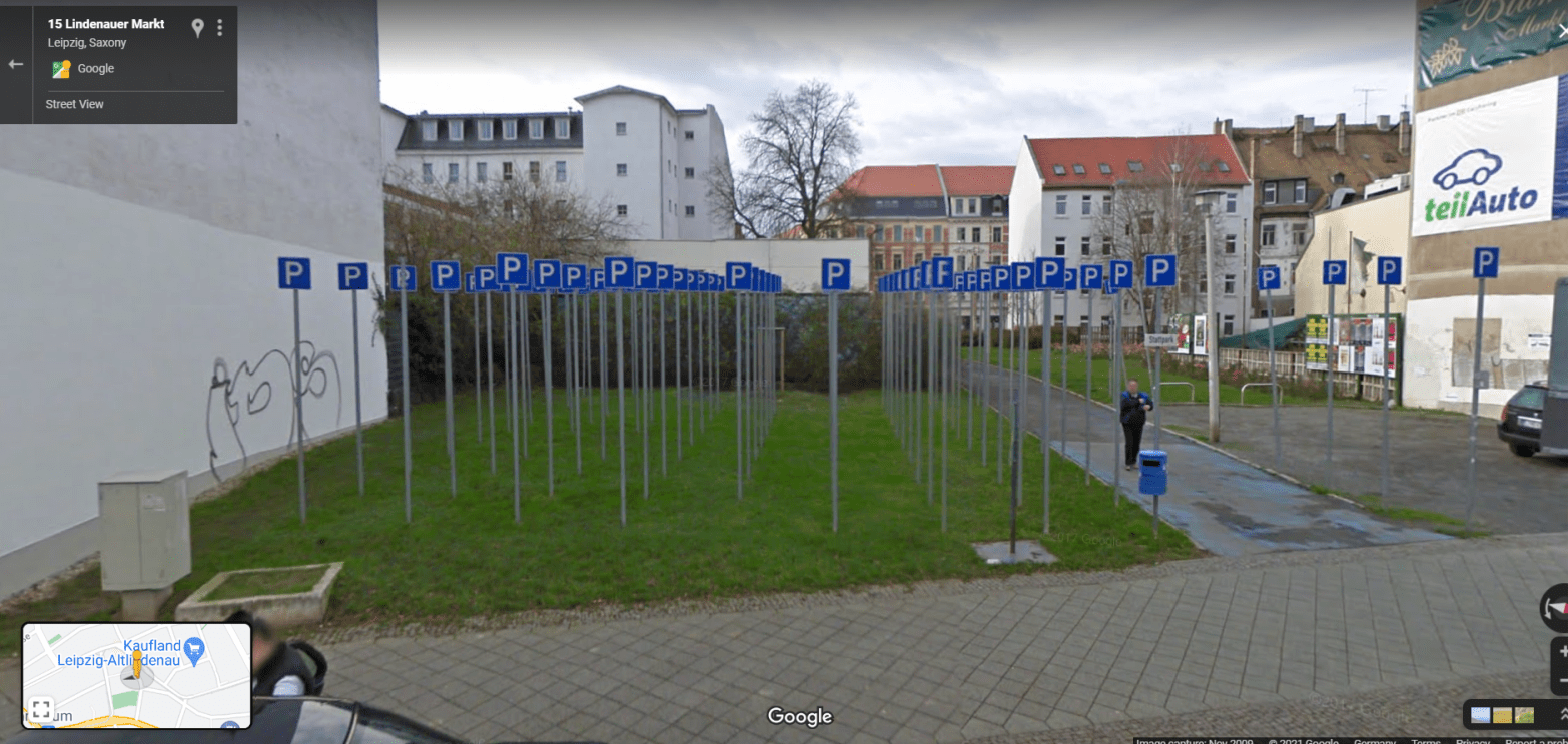 A lot of parking signs https://www.google.com/maps/@51.337269,12.3339478,3a,48.8y,257.14h,86.74t/data=!3m6!1e1!3m4!1shbFJsiWJiaDtvgt6mKNLdQ!2e0!7i13312!8i6656