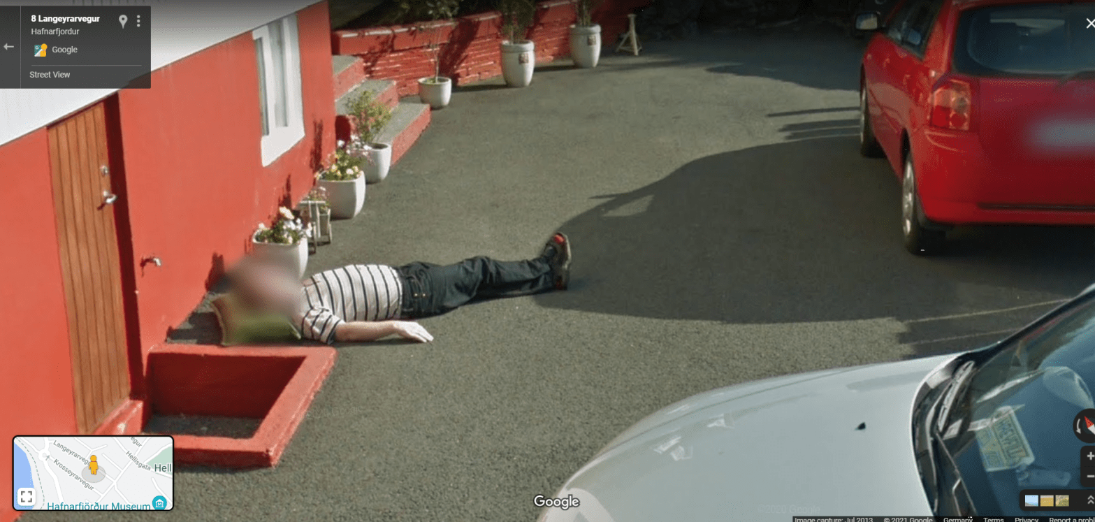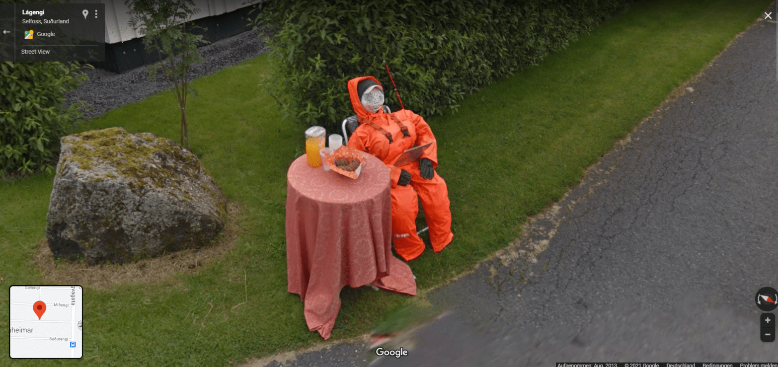 Funny people in Iceland Google Maps link: https://www.google.com/maps/@63.8368881,-22.4408994,3a,15y,38.02h,83.57t/data=!3m6!1e1!3m4!1sBtQ6CWrfpSuqwtCsqBZe7Q!2e0!7i13312!8i6656